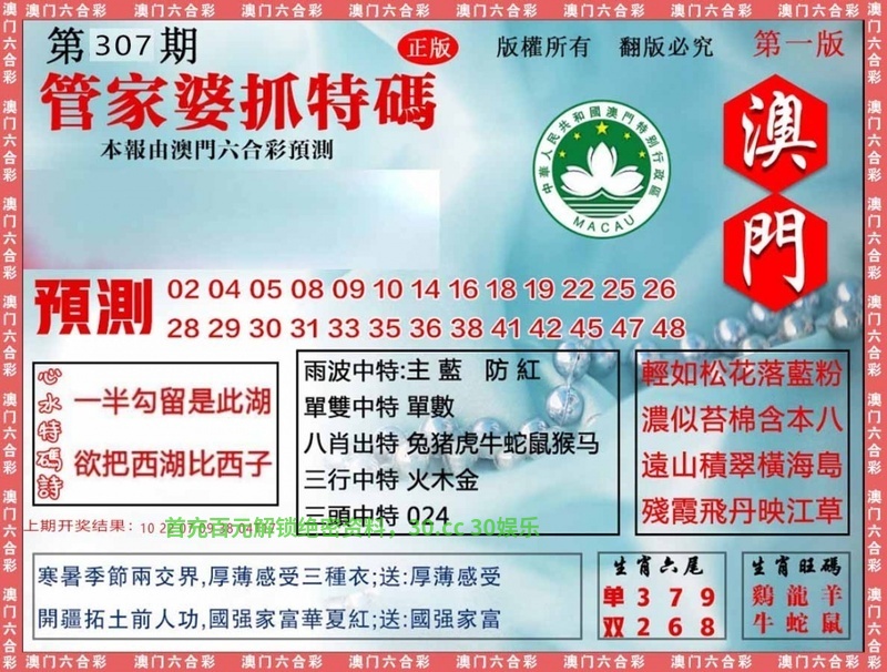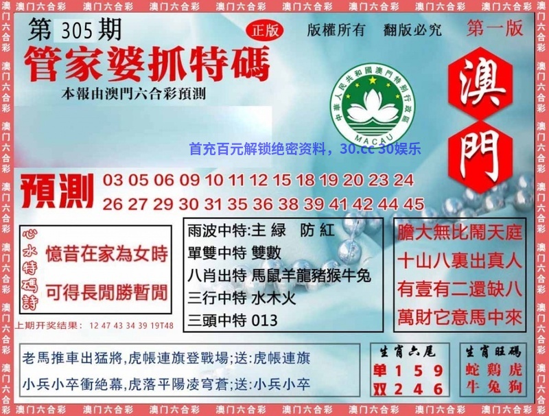 | 307期:🌴三头中特🌴【0-2-3头】开:狗20中 |